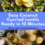 A quick and flavorful 10-minute coconut curried lentils recipe combining tender brown lentils, vibrant spinach, and rich coconut milk, enhanced with aromatic curry powder and fresh lemon for a bright, comforting meal perfect for busy weeknights.