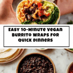 These 10-Minute Vegan Burrito Wraps are a quick and flavorful meal featuring seasoned black beans, sautéed red bell peppers, and a variety of fresh, vibrant toppings wrapped in warm flour tortillas. Perfect for a nutritious lunch or dinner, these burritos combine plant-based protein and fresh vegetables with zesty homemade or store-bought salsa for an easy and satisfying vegan dish.