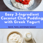 A simple and nutritious 3-ingredient coconut chia pudding featuring Greek yoghurt and coconut milk for a creamy, high-protein, and high-fiber breakfast or snack that is easy to prepare and perfect for a healthy lifestyle.