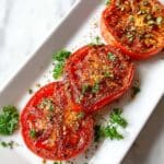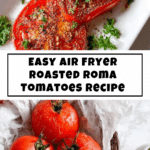 Perfectly caramelized Roma tomatoes roasted in the air fryer with olive oil, garlic, basil, and oregano. These tender, flavorful tomatoes are sweet, savory, and versatile — ideal as a side, topping, or base for countless dishes.