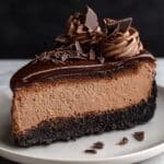 This Baked Chocolate Cheesecake is a luxurious dessert featuring a buttery Oreo crust, a silky dark chocolate filling, and a glossy ganache topping, finished with rich chocolate whipped cream for the ultimate indulgence.