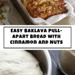 10. Cool and Serve: Let the bread cool in the pan for about 20 minutes before transferring to a serving plate. Pull apart the layers to enjoy the flaky, nutty, and sweet baklava-inspired bread. Best served warm or at room temperature.