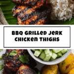 BBQ Grilled Jerk Chicken Thighs are tender, smoky, and infused with bold Caribbean spices. Marinated in a fragrant blend of herbs, chilies, and lime, then grilled to perfection, they deliver heat, flavor, and charred goodness in every bite.
