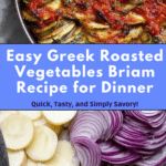 Briam is a traditional Greek dish featuring a colorful medley of roasted vegetables such as potatoes, zucchini, onions, and tomatoes, infused with fragrant herbs and garlic, all baked to tender perfection in extra virgin olive oil. This healthy, rustic casserole bursts with Mediterranean flavors and makes a perfect side dish or light main course.