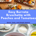 This Burrata Bruschetta with Peaches and Tomatoes is a delightful summer appetizer combining creamy burrata cheese with sweet peaches, juicy tomatoes, and a flavorful balsamic vinaigrette. Served on toasted Italian or French bread, it’s a perfect balance of creamy, sweet, tangy, and savory flavors with a fresh basil finish.