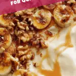 - Assemble bowl: Spoon the yogurt mixture into a serving bowl. Top with the warm caramelized bananas, toasted walnuts, a drizzle of peanut butter, and finish with a sprinkle of flaky sea salt to enhance all the flavors.