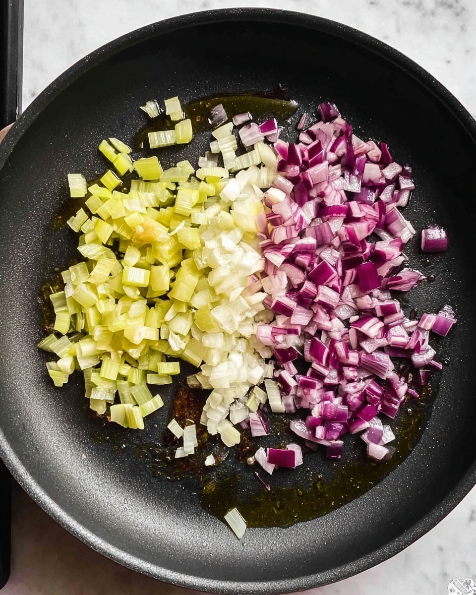- I add the diced onion, bell pepper, and minced garlic, cooking for 3–4 minutes until the vegetables soften and become fragrant.