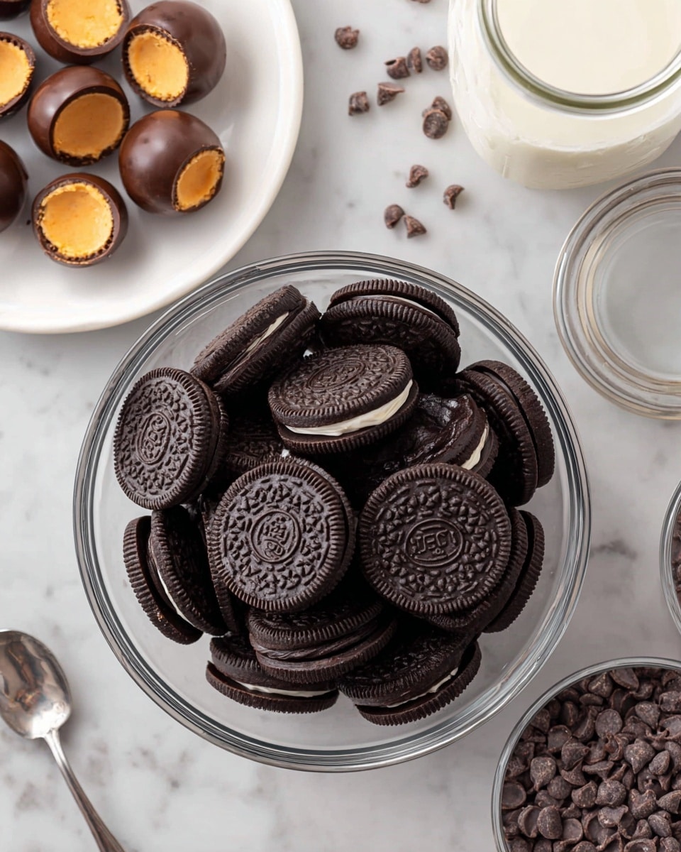 - To make the crust, I crush the Oreo cookies into fine crumbs and mix them with the melted butter until evenly moistened. I press the mixture firmly into the bottom of the prepared pan and bake for 10 minutes. I set it aside to cool while preparing the filling.