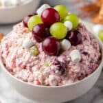 A festive and creamy cranberry dessert salad made with tart cranberries, fluffy whipped cream, crunchy walnuts, and sweet mini marshmallows. This colorful treat is easy to make ahead and perfect for holidays or any gathering.