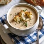 Creamy Roasted Cauliflower Soup is a velvety, flavorful soup made by blending roasted cauliflower with onion, garlic, and a touch of lemon for brightness. Naturally creamy without heavy cream, it’s a comforting yet light dish perfect for cozy nights or elegant dinners.