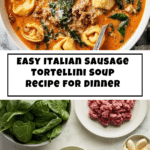 This comforting Italian-inspired tortellini soup features savory Italian sausage, tender spinach tortellini, fresh spinach, and a flavorful tomato broth enriched with cream. Perfect for a quick, hearty meal that combines rich flavors and satisfying textures.