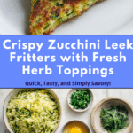 This Crispy Zucchini and Leek Herb Fritters Recipe freezes beautifully, making it perfect for meal prep. Freeze uncooked fritters on a parchment-lined tray until firm, then transfer them to a freezer bag for up to 3 months. You can also freeze cooked fritters, but they’ll retain more texture and flavor if you had crisped them up beforehand.