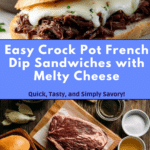 These Crock Pot French Dip Sandwiches feature tender, slow-cooked beef chuck roast infused with savory seasonings and rich broth, served on toasted French rolls with melted provolone cheese. Perfect for a comforting, hands-off meal with flavorful au jus for dipping.