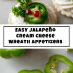 These Cute Wreath Appetizers are a festive and flavorful bite-sized snack perfect for holiday gatherings or any celebration. Featuring spicy jalapeños, smooth whipped cream cheese, crunchy rice crackers, and a pop of pink peppercorns, all garnished with fresh curly parsley, these appetizers are as charming as they are delicious.