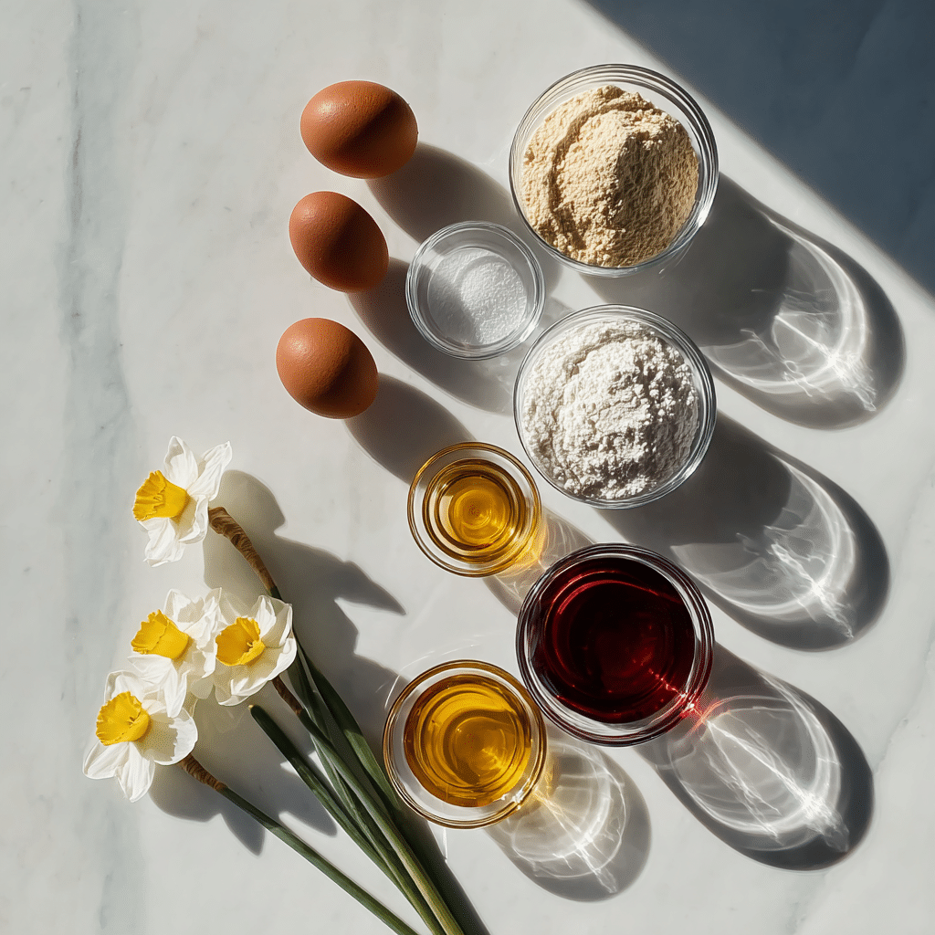 The eggs provide structure, lift, and that airy angel-food-like texture unique to daffodil cake.