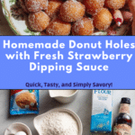 Delight in these homemade Donut Holes paired with a fresh Strawberry Dipping Sauce. Soft, fluffy donut holes are fried to a golden perfection and coated in sugar, complemented by a sweet, smooth sauce made from fresh strawberries, sugar, vanilla, and an optional splash of bourbon. Perfect for gatherings or a sweet treat any time of day.