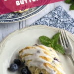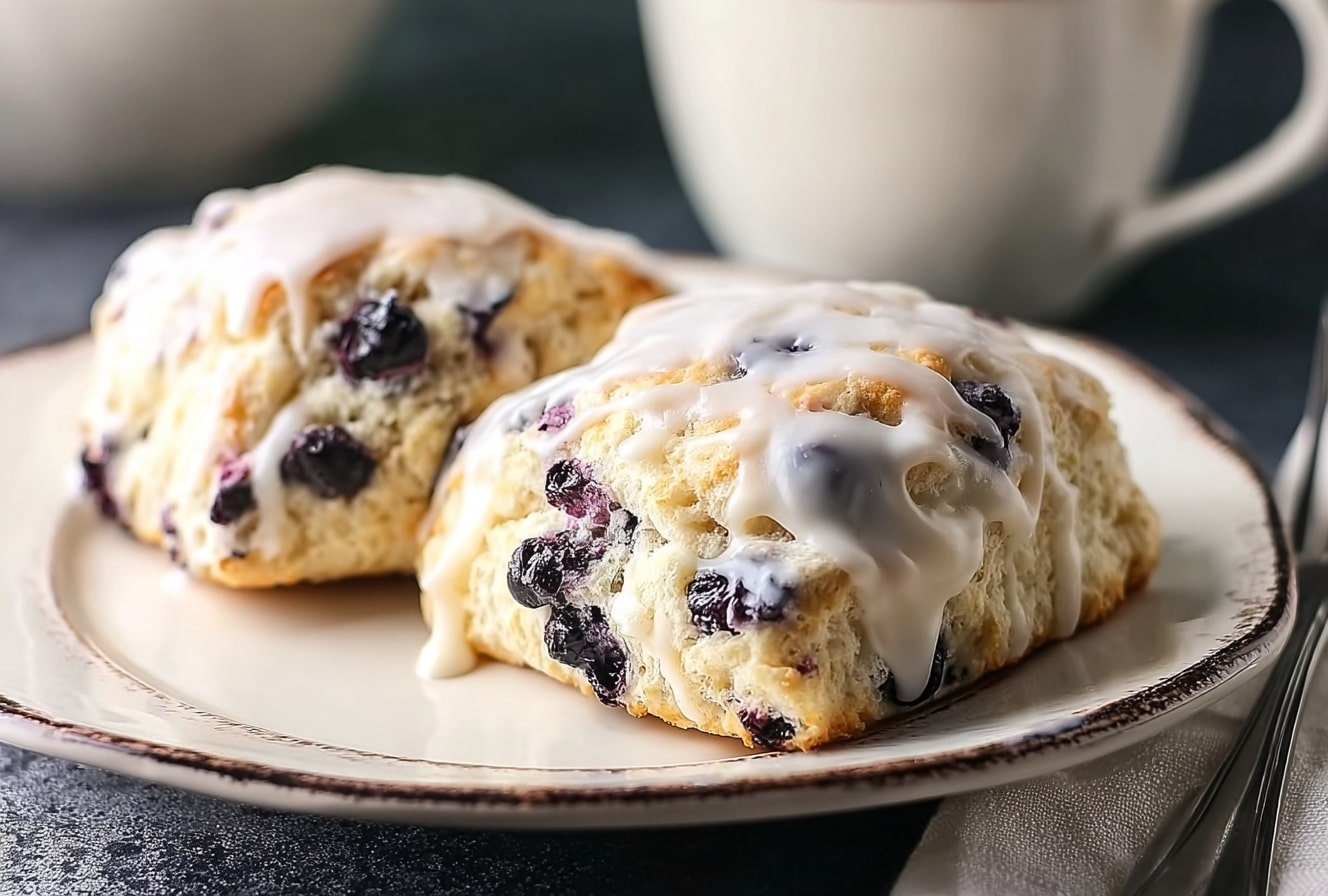 Tender, buttery blueberry scones drizzled with a bright lemon butter glaze. These scones are soft, flaky, and bursting with juicy blueberries, making them perfect for breakfast, brunch, or a sweet afternoon treat.
