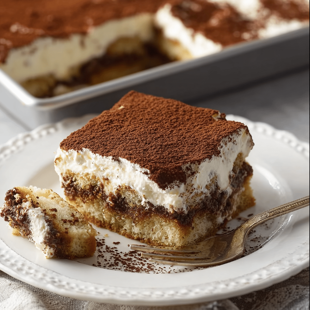Sometimes I add a splash of coffee liqueur or rum to the coffee soak for an adult twist. For a different flavor, I swap the vanilla frosting for a chocolate version. I also like layering the cake into a trifle dish with extra frosting for a parfait-style tiramisu.