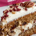Wrap leftover cake tightly with plastic wrap or store in an airtight container in the fridge. The cake stays moist and flavorful for up to 4 days when refrigerated, and the cream cheese frosting holds up nicely.