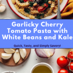 This Garlicky Cherry Tomato Pasta with White Beans is a vibrant and wholesome dish featuring sautéed cherry tomatoes, kale, white beans, and kalamata olives, all tossed with perfectly cooked pasta. The sauce is infused with garlic, shallots, red pepper flakes, and finished with a splash of pasta water for a luscious, light coating. It’s a quick, easy, and nutritious vegan meal perfect for busy weeknights.