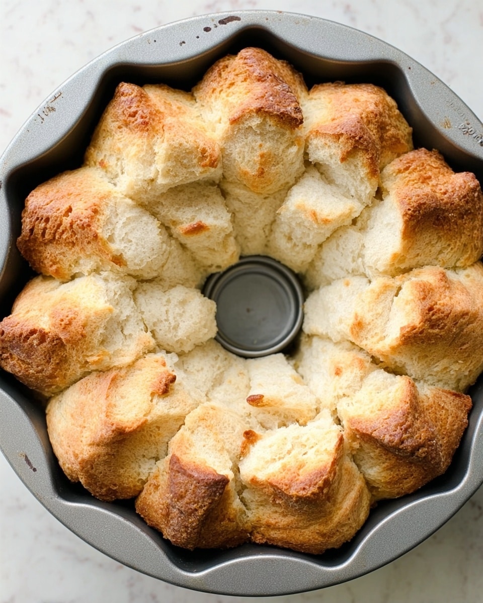 I store leftovers covered at room temperature for up to 2 days or in the refrigerator for up to 5 days. To reheat, I warm individual portions in the microwave for about 15–20 seconds or place the whole loaf in a 300°F oven for 10 minutes. I don’t recommend freezing it after glazing, but unglazed monkey bread freezes well for up to 2 months.