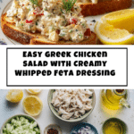 This Greek Chicken Salad is a refreshing and creamy dish that combines shredded chicken with a luscious whipped feta yogurt dressing, crisp cucumbers, sun-dried tomatoes, Kalamata olives, fresh dill, and red onion. Perfect for a quick, healthy lunch or light dinner, it can be enjoyed with pita, in a wrap, or over fresh greens.