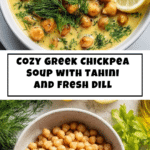 Greek Chickpea Soup, or Revithosoupa, is a hearty and comforting traditional Greek dish featuring tender chickpeas simmered with aromatic vegetables, fresh herbs, and a creamy tahini finish. This nutritious soup is brightened with lemon juice and fresh dill, making it perfect for a wholesome meal any time of year.