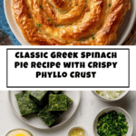 Whipping up this Greek Spinach Pie (Spanakopita) Recipe at home is a rewarding experience that fills your kitchen with captivating aromas and your table with delight. Its delicate layers, fresh flavors, and wonderfully crispy finish combine to make it a real crowd-pleaser. Whether you’re new to Greek cooking or a seasoned fan, this recipe will quickly become a personal favorite you’ll love serving over and over again. Give it a try and share the joy!