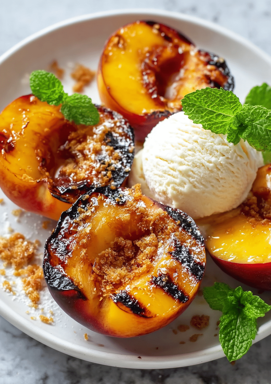 Grilled Peaches are a quick and elegant dessert where ripe peaches are lightly grilled to caramelize their natural sweetness, then served warm with honey, nuts, or ice cream.