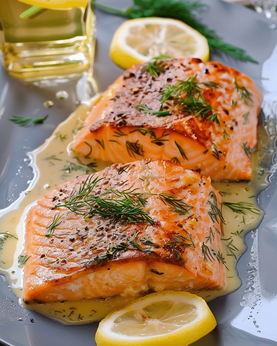Juicy grilled salmon fillets served with bright lemon dill butter and a creamy garlic-Parmesan sauce for a restaurant-quality meal ready in under 30 minutes.