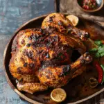 Grilled Whole Chicken with Harissa and Pomegranate is a smoky, flavorful, and juicy whole chicken perfect for outdoor grilling or indoor roasting. Marinated in a vibrant blend of harissa, orange juice, olive oil, and pomegranate molasses, it’s bursting with North African-inspired flavors.