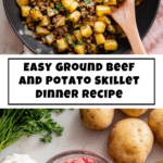 This Ground Beef and Potatoes Skillet Recipe stands strong on its own but pairs wonderfully with a crisp green salad, some steamed green beans, or roasted vegetables. These sides bring lightness and balance to the meal, adding crunch and freshness that highlight the skillet’s rich, savory profile.