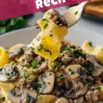 A classic and comforting Ground Beef Stroganoff recipe that’s ready in just 30 minutes. This creamy dish combines tender ground beef, sautéed mushrooms and onions, and a flavorful sour cream sauce served over egg noodles, perfect for a hearty weeknight dinner.