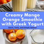 This Healthy Mango Orange Smoothie with Yogurt is a refreshing and nutritious drink blending the tropical sweetness of mango and mandarin oranges with creamy Greek yogurt and a hint of ginger. Perfect for a quick breakfast or an energizing snack, this smoothie is both delicious and packed with vitamins and protein.