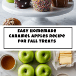 This Homemade Caramel Apples Recipe combines crisp Granny Smith apples with a rich, creamy caramel coating made from brown sugar, sweetened condensed milk, dark corn syrup, butter, and vanilla. Perfect for fall treats, these caramel apples are dipped, rolled in toppings, and cooled to create a deliciously sticky and sweet snack that’s fun to make and impressive to serve.