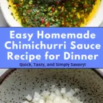This Homemade Chimichurri Sauce is a vibrant, fresh, and tangy Argentinean condiment that elevates grilled meats, vegetables, and sandwiches. Made from finely chopped parsley, garlic, vinegar, and olive oil, with optional hints of cilantro, shallot, oregano, and lemon juice, this versatile sauce is easy to prepare and packed with bright, herbaceous flavors.