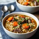 I store leftovers in an airtight container in the refrigerator for up to 3-4 days. Because barley continues to absorb liquid when resting, the soup may thicken—so when reheating I warm it gently on the stove and add a splash of beef broth or water to bring it back to desired consistency.