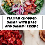A vibrant and hearty Italian Chopped Salad featuring kale, romaine, sun-dried tomatoes, salami, provolone, and a zesty homemade vinaigrette. This salad combines crunchy and tender textures with bold, savory flavors for a satisfying and colorful dish perfect for gatherings or meal prep.