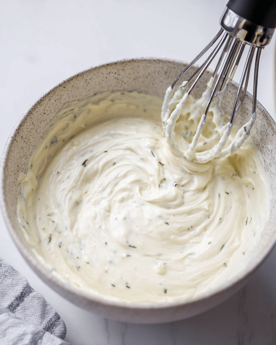 - In a separate bowl, I whip the heavy whipping cream with powdered sugar until stiff peaks form.
