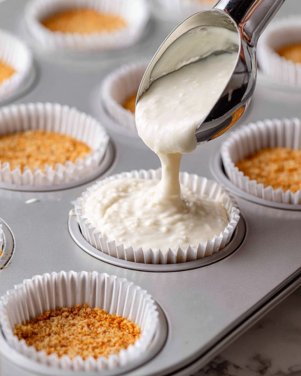 - Divide cheesecake filling evenly among prepared crusts and smooth the tops.