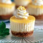 These are no-bake cheesecakes, but if I prefer a baked version, I bake them at 325°F for about 15–18 minutes.