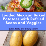 These Loaded Mexican Baked Potatoes are a flavorful twist on classic jacket potatoes, filled with seasoned refried beans, sautéed fajita-style vegetables, and topped with melted cheddar cheese, sour cream, and fresh garnishes. Perfect for a hearty, satisfying meal with a vibrant Mexican flair.