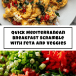 This Mediterranean Breakfast Scramble is a quick, flavorful, and healthy morning meal featuring fresh vegetables, creamy feta cheese, and fluffy scrambled eggs. Bursting with vibrant Mediterranean flavors from tomatoes, red pepper, spinach, scallions, basil, and olive oil, it makes a satisfying and nutritious start to your day.