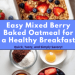 A wholesome and delicious Mixed Berry Oatmeal bake featuring rolled oats, fresh berries, and warm spices, perfect for a nutritious breakfast or snack. This baked oatmeal is naturally sweetened with maple syrup and combined with almond milk for a dairy-free option.