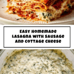 This classic Mom’s Lasagna Recipe with Cottage Cheese features a rich tomato sauce layered with a creamy cheese mixture, spicy Italian sausage, fresh vegetables, and oven-ready lasagna sheets. A comforting and hearty Italian-American dish made with a blend of cottage cheese, ricotta, mozzarella, and Parmesan cheeses, perfectly seasoned with herbs and spices, baked until bubbly and golden.