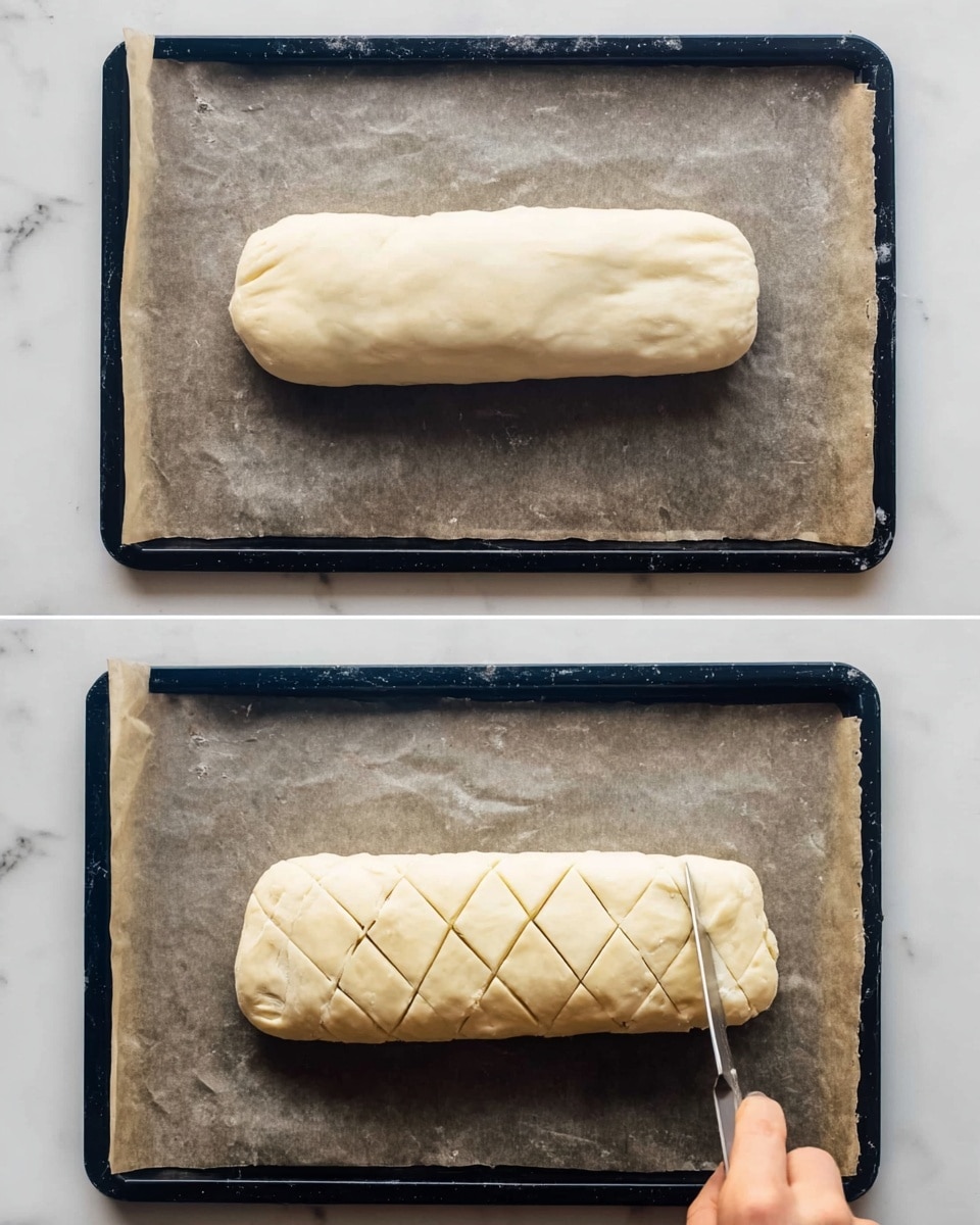 - I use a sharp knife to gently score the top for decoration and to allow steam to escape.