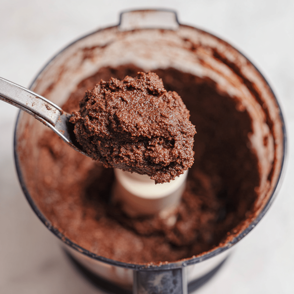 - If the mixture seems too dry or crumbly, add 1–2 tablespoons of water, one at a time, pulsing after each addition until it reaches a fudgy consistency.
