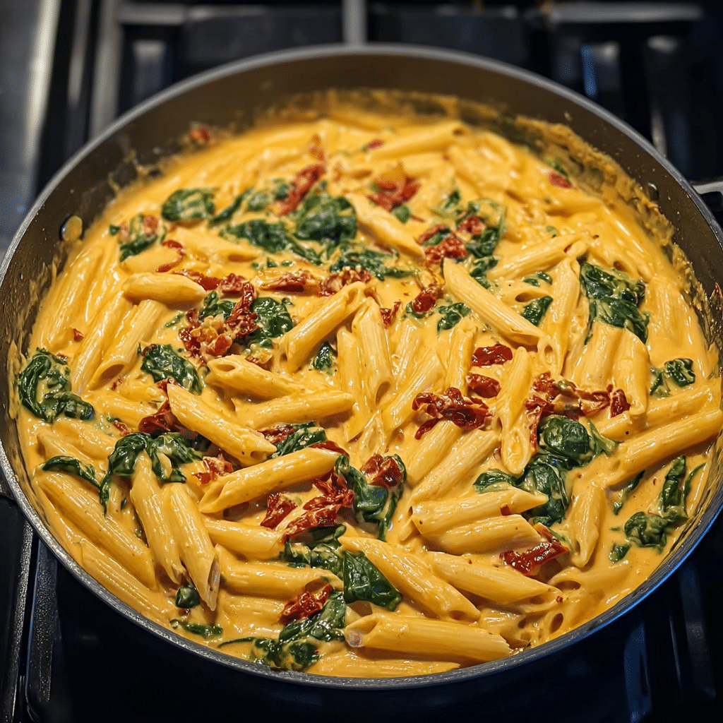 I enjoy this recipe because it’s both hearty and easy everything cooks in a single pot, which means fewer dishes and a meal ready in under 30 minutes. The sun-dried tomatoes add depth and sweetness, while the spinach and basil bring freshness that balances the richness of the cream and Parmesan. It’s my kind of weeknight comfort food: cozy, flavorful, and minimal fuss.