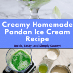 For a fun twist, serve your pandan ice cream in hollowed-out coconut shells or mini waffle cones dyed a matching green. You could even layer it in parfait glasses with crushed pandan cookies or matcha crumbs to create a gourmet look that’s sure to impress guests.