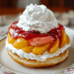 I absolutely love this creative twist on the classic shortcake — instead of biscuits, I use soft, glazed doughnuts as the base. The combination of warm, spiced peaches, pillowy homemade whipped cream, and that sweet, glossy doughnut makes each bite melt in my mouth. It’s comfort food meets elegance, and it couldn’t be easier to make.